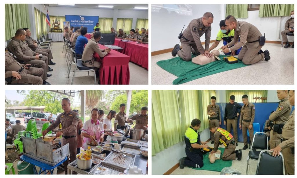 1.จัดฝึกอบรมการปฐมพยาบาลเบื้องต้นโดยทีมวิทยากรจากโรงพยาบาลศรีเทพ สาธิตการทำ CPR ให้ผู้หมดสติ และการใช้เครื่อง AED เพื่อให้เจ้าหน้าที่ตำรวจมีความรู้ความเข้าใจและมีความชำนาญในการปฏิบัติสามารถช่วยเหลือประชาชนเบื้องต้นได้เมื่อเกิดเหตุฉุกเฉิน