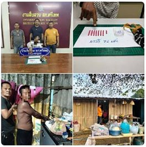 ร่วมกันจับกุมตัวยาเสพติดให้โทษประเภท1 เมทแอมเฟตามีน จำนวน 76 เม็ด 27 เมษายน 2568 โดย admin / ข่าวประชาสัมพันธ์,ข่าวประชาสัมพันธ์,งานสืบสวน,งานสืบสวน เดือนมกราคม 68,ข่าวประชาสัมพันธ์,ม.ค.68,อิ่น ๆ วันที่ 8 ม.ค. 2568 เวลา ประมาณ 17.30 น. เจ้าหน้าที่ตำรวจชุดจับกุมประกอบด้วย พ.ต.ท.ปราโมทย์ บรรจงทอง สว.อก.สภ.ศรีเทพ พ.ต.ท.มนัส กาญจนรัชต์ สว.สส.สภ.ศรีเทพ ร.ต.อ.วิรัช รัตนบัวพา,ร.ต.ต ธงชัย ทองกระจ่าง ร.ต.ต.เฉลิมชัย มีเลข, ส.ต.อ.เกริกพล เอ็นจันทึก ,ส.ต.ท.ปัฐพี กมลเสถียร ได้ร่วมกันจับกุมตัวยาเสพติดให้โทษประเภท1 เมทแอมเฟตามีน จำนวน 76 เม็ด โดยกล่าวหาว่ามียาเสพติดให้โทษประเภท 1 เมทแอมเฟตามีนหรือยาบ้าไว้ในความครอบครองโดยไม่ได้รับอนุญาต,เสพ ควบคุมตัวพร้อมของกลาง ส่งพนักงานสอบสวน สภ.ศรีเทพ Facebook iconFacebookTwitter iconTwitterLINE iconLine