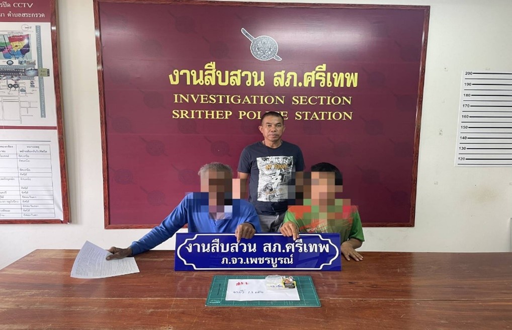 ร่วมกันจับกุมตัวผู้ต้องหา 2 ราย พร้อมด้วยของกลาง เมทแอมเฟตามีนหรือยาบ้า จำนวน 13 เม็ด 27 เมษายน 2568 โดย admin / ข่าวประชาสัมพันธ์,ก.พ.68,ข่าวประชาสัมพันธ์,ข่าวประชาสัมพันธ์,งานสืบสวน,งานสืบสวน เดือนกุมภาพันธ์ 68,อิ่น ๆ วันที่ 7 ก.พ. 2568 เวลา ประมาณ 12.00 น. เจ้าหน้าที่ตำรวจชุดจับกุมประกอบด้วย พ.ต.ท.ปราโมทย์ บรรจงทอง สว.อก.สภ.ศรีเทพ พ.ต.ท.มนัส กาญจนรัชต์ สว.สส.สภ.ศรีเทพ ร.ต.อ.วิรัช รัตนบัวพา,ร.ต.ต ธงชัย ทองกระจ่าง ร.ต.ต.เฉลิมชัย มีเลข , ส.ต.อ.เกริกพล เอ็นจันทึก ,ส.ต.ท.ปัฐพี กมลเสถียร ได้ร่วมกันจับกุมตัวผู้ต้องหา 2 ราย🛑พร้อมด้วยของกลาง เมทแอมเฟตามีนหรือยาบ้า จำนวน 13 เม็ด🛑โดยกล่าวหาว่าร่วมกันครอบครองยาเสพติดให้โทษประเภท 1 ไว้ในความครอบครองโดยไม่ได้รับอนุญาต,เสพ ควบคุมตัวพร้อมของกลาง ส่งพนักงานสอบสวน สภ.ศรีเทพ Facebook iconFacebookTwitter iconTwitterLINE iconLine