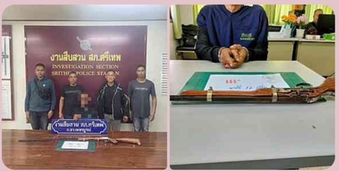 ร่วมกันจับกุมยาเสพติดให้โทษประเภท 1 เมทแอมเฟตามีนหรือยาบ้าไว้ในครอบครองโดยไม่ได้รับอนุญาต 27 เมษายน 2568 โดย admin / ข่าวประชาสัมพันธ์,ข่าวประชาสัมพันธ์,งานสืบสวน,ข่าวประชาสัมพันธ์,ธ.ค.67,อิ่น ๆ วันที่ 23 ธ.ค.2567 เวลา 12.30 น. เจ้าหน้าที่ตำรวจชุดจับกุมประกอบด้วย พ.ต.ท.ปราโมทย์ บรรจงทอง สว.อก.สภ.ศรีเทพ พ.ต.ท.มนัส กาญจนรัชต์ สว.สส.สภ.ศรีเทพ, ร.ต.อ.วิรัช รัตนบัวพา, ร.ต.ต.ธงชัย ทองกระจ่าง, ร.ต.ต.เฉลิมชัย มีเลข, ส.ต.อ.เกริกพล เอ็นจันทึก, ส.ต.ท.ปัฐพี กมลเสถียร ได้ร่วมกันจับกุม ยาเสพติดให้โทษประเภท 1 เมทแอมเฟตามีนหรือยาบ้าไว้ในครอบครองโดยไม่ได้รับอนุญาต เสพ มีอาวุธปืนไว้ในครอบครองโดยไม่ได้รับอนุญาต ควบคุมตัวพร้อมของกลางส่งพนักงานสอบสวน Facebook iconFacebookTwitter iconTwitterLINE iconLine